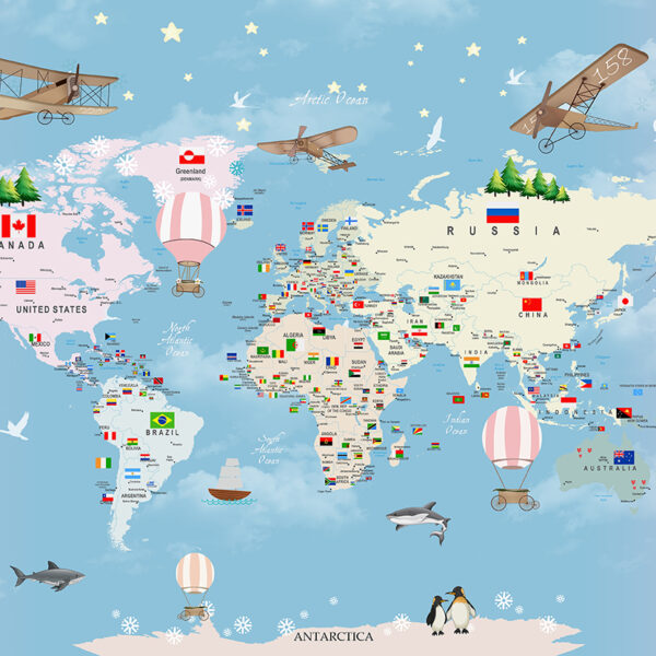 3D Duvar Kağıdı Mavi Dünya Haritası