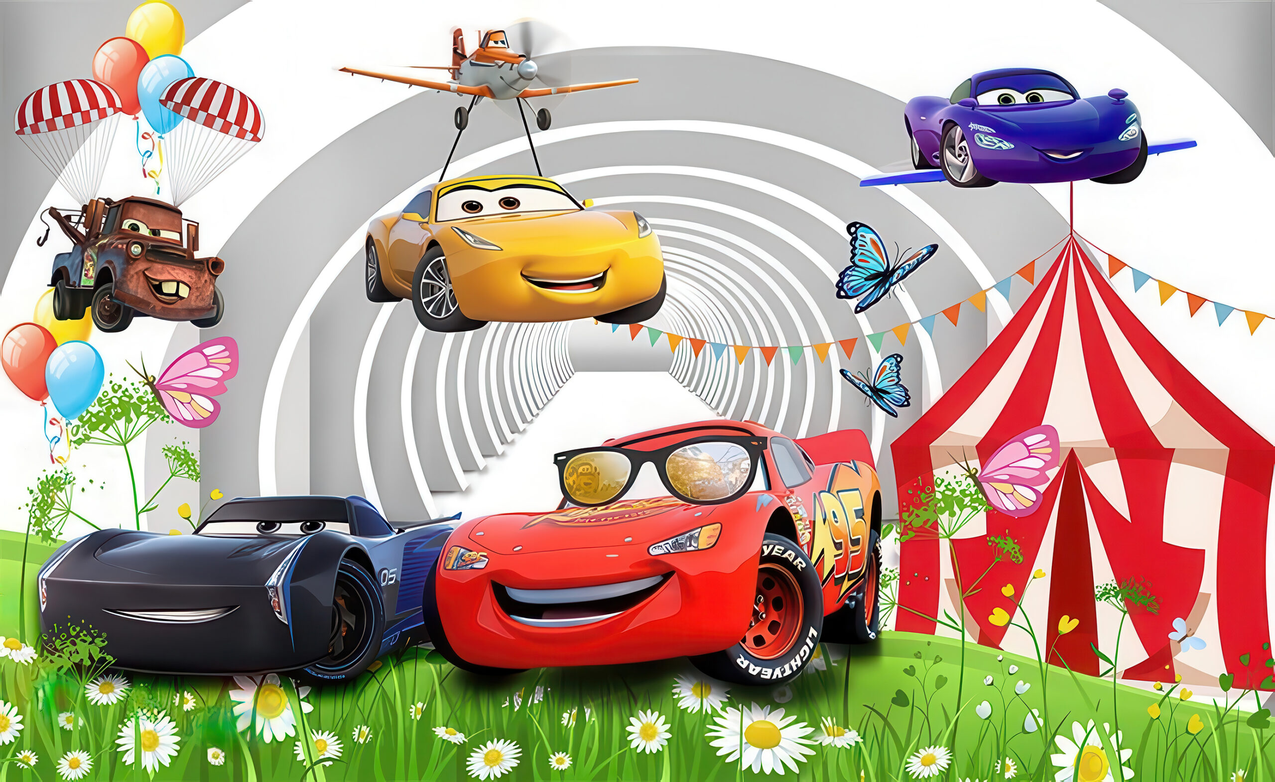 3D Duvar Kağıdı Araba Şimşek Mcqueen