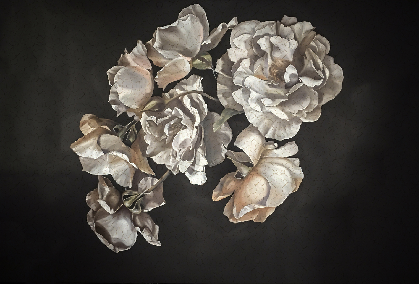 3D Duvar Kağıdı Kırık Beyaz Gül Desenli