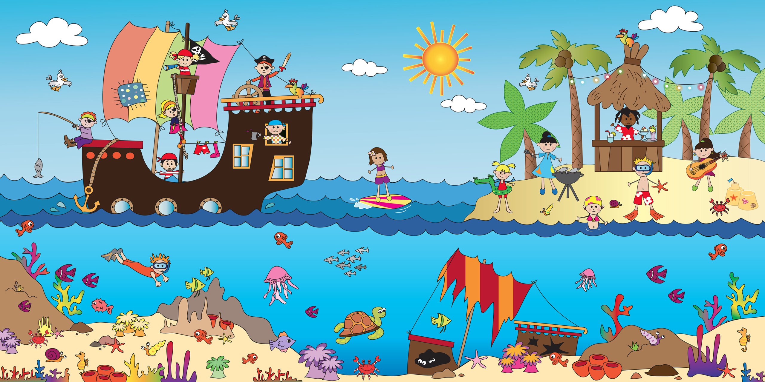 3D Duvar Kağıdı Çocuk Odası Denizaltı