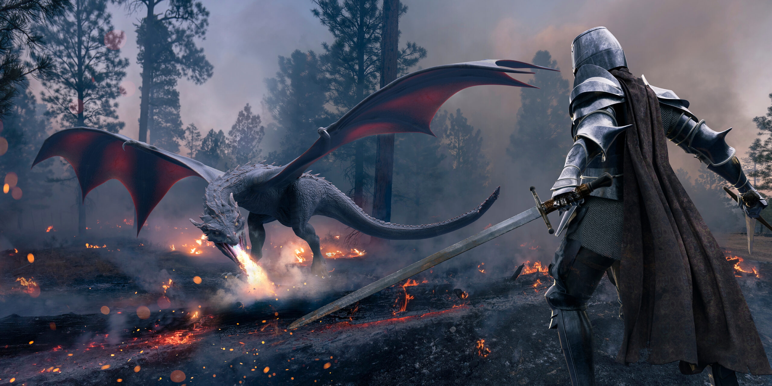 3D Duvar Kağıdı Ejderha ve Şövalye