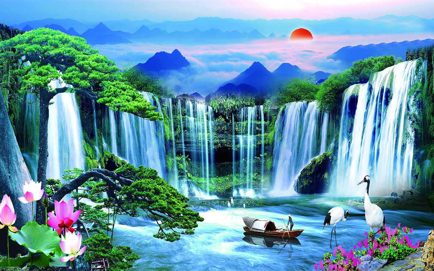 3D Duvar Kağıdı Şelale Manzaralı