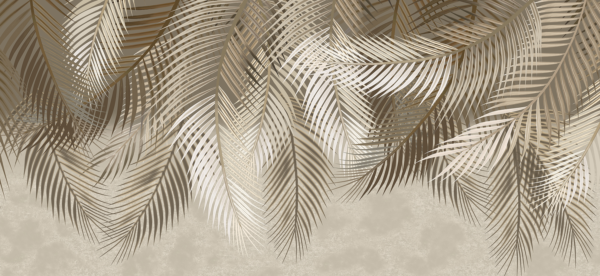 Altın Palmiye Desenli 3D Duvar Kağıdı